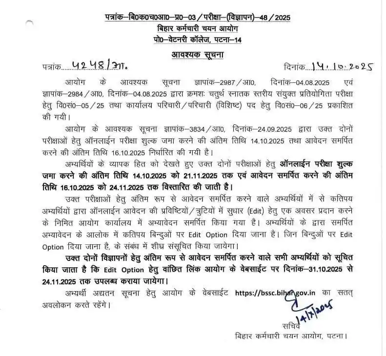 भर्ती प्रक्रिया से संबंधित अधिक जानकारी के लिए उम्मीदवार BSSC की आधिकारिक वेबसाइट पर जाकर नोटिफिकेशन को चेक कर सकते हैं।